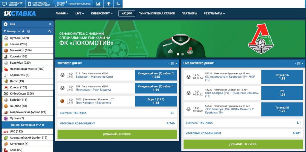 1xBet ежедневно предлагает тысячи спортивных событий: футбол, баскетбол, хоккей, теннис, киберспорт, виртуальный спорт, а также ставки на форы, тоталы, исходы, спецставки и live-пари. Киберспорт представлен турнирами по Dota 2, CS:GO, League of Legends, Starcraft 2 — ставки доступны 24/7.